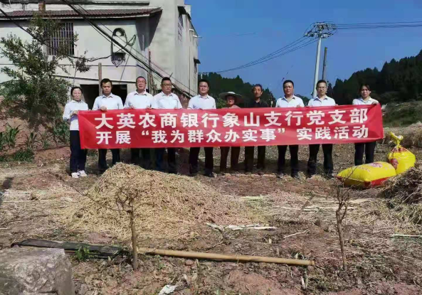 在开展实践活动中,大英农商银行坚持以深学促实干、以实干促惠民,积极为群众办实事、解难题;该行党委坚持带头抓落实,积极引导辖内基层党支部和党员干部走进乡村、走进社区、走进企业、开展困难群体慰问、金融知识普及、金融需求调研等活动,奏好了落实“主旋律”,弹好了落实“协奏曲”,唱好了落实“最强音”;该行党员干部积极热诚,挥汗如雨,辛勤劳作,充分发挥党员干部的先锋示范作用,用心用情用力解决群众的实际困难,用实际行动践行党的初心使命,把为群众办实事向纵深推进。