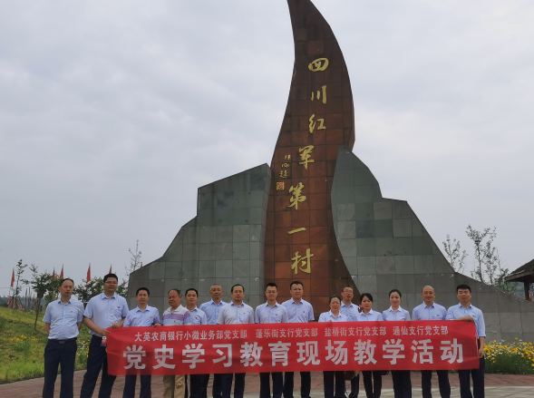 大英农商银行小微业务部党支部、蓬乐街支行党支部、通仙支行党支部、盐桥街支行党支部全体党员走进“四川红军第一村”红色教育基地