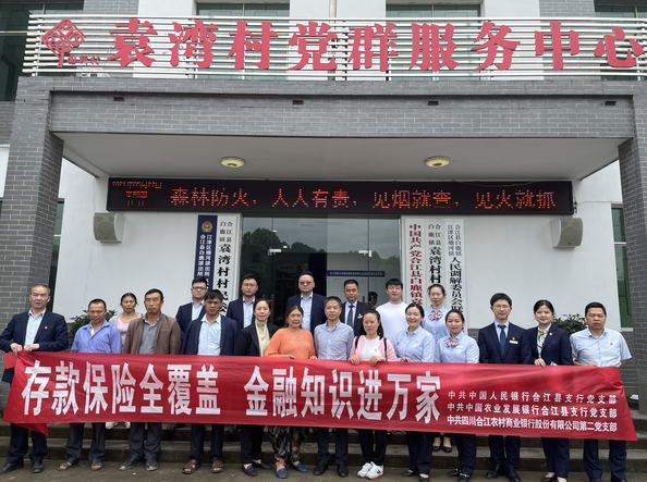 为进一步将党史学习教育“为群众办实事”活动落到实处,5月27日,合江农商银行第二党支部与人行合江县支行党支部、农发行合江县支行党支部到白鹿镇袁湾村联合开展了“存款保险全覆盖 金融知识进万家”存款保险知识宣传活动。