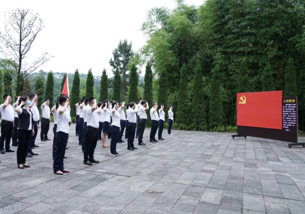 缅怀先烈,致敬英雄。在纪念广场卢德铭同志雕塑前,党委书记张序代表自贡银行向卢德铭烈士敬献花篮,并带领全体党员重温入党誓词,感悟入党初心。全体人员默哀致敬革命先烈一分钟,以表达对先烈的缅怀之情。