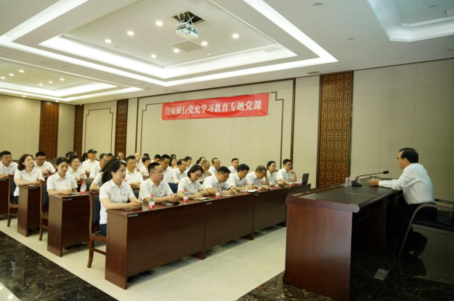 在德铭讲堂,张序以“百年历史看党的初心和使命”为题,带领大家共同了解了中国共产党百年发展历程、光荣传统、宝贵经验和取得的伟大成就,弄清楚了我们从哪里来、往哪里去,给现场人员上了一堂精彩的专题党课。同时,张序就自贡银行持续高质量开展好党史学习教育提出了更高要求:要提高政治站位,深刻认识开展党史学习教育的重大意义;要牢牢把握目标要求,高质量高标准组织开展党史学习教育;要紧密结合工作实际,确保党史学习教育扎扎实实取得实效的工作要求。