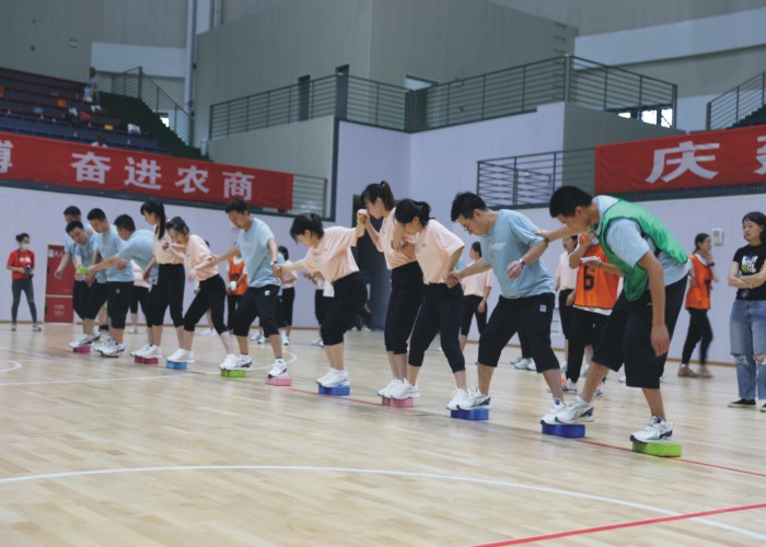 当天,在泸州职业技术学院体育馆内,简短而隆重的开幕式后开始了紧张激烈的比赛。“稳住稳住,不要慌,步调要一致......”,两人一组的运动员合力背着蓝球,紧密配合争分夺秒地向前冲刺;发球、扣球、你来我往,奋力厮杀,乒乓球、羽毛球比赛也格外精彩;拔河比赛更是展示团队精神的项目,“加油、加油......”一阵阵喝彩和助威声此起彼伏,给运动健儿们加油鼓劲。整场比赛,运动员们团结拼搏、奋力进取,展现了泸州农商银行人积极向上的风采。