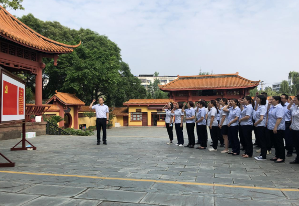 魁山脚下,御马河畔,同志们排着整齐队列,神情肃穆地站在英雄的雕塑面前默哀,他们依次向英雄敬献鲜花,用深深革命先辈鞠躬致敬。在蓬溪农商银行党委书记、董事长许虎同志的领誓下,全体同志庄严地举起了右拳,重温起了入党誓词: