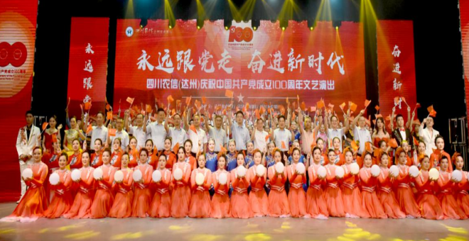 百年征程波澜壮阔,百年初心历久弥坚。为重温党的光辉历程,歌颂党的伟大成就,四川农信(达州)于6月28日在达州市中心广场演艺中心举办“永远跟党走 奋进新时代”——庆祝中国共产党成立100周年文艺演出。市级相关部门领导、各行社班子成员、客户代表、员工代表现场观看演出。