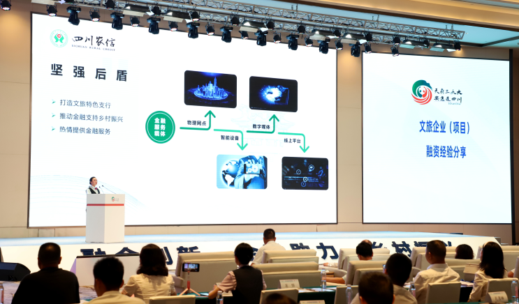 7月9日,2021年全省金融服务与文旅企业恳谈对接会在广安市举行。该项活动由广安市人民政府、四川省社会科学院、成渝高校联盟主办,以“融合创新、金融助力、乡村振兴”为主题,旨在推动文旅投融资促进机制落实,深化政银企对接合作,促进金融在乡村振兴和成渝双城经济圈建设中发挥积极作用。邻水农商银行代表四川农信(广安)在会上作金融支持文旅产业经验交流,与邻水县文旅局签订战略合作协议,并与五华山景区、铜锣山生态园分别签订5000万、3000万的文旅项目融资合作意向书。省联社党委委员、副主任姜林在会上向邻水农商银行授牌“文旅特色支行”。
