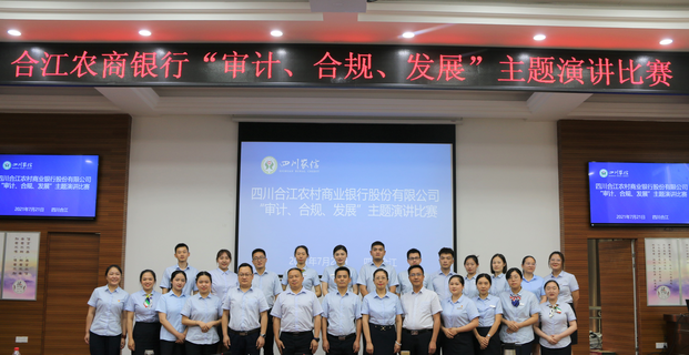 7月20日,为进一步提升内部审计监督工作质效,增强审计监督合力,培养审计人才,促进业务经营健康发展,合江农商银行举办了“审计、合规、发展”主题演讲比赛。合江农商银行领导班子、全行中层干部以及审计部门全体员工现场观看了比赛。