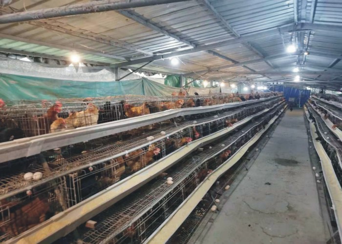 李军家以前是千口村一个以种地谋生的农户家庭,后来政府出台了土地流转政策,2020年2月李军向当地政府申请,流转了村里9组1.5亩土地建了鸡舍,同年12月流转了1000平方荒山发展蛋鸡饲养,并成立了专业合作社。目前,李军的专业合作社主要是养殖蛋鸡,有两间鸡舍,蛋鸡和鸡苗约有12000余只,均使用自动投料饲养,平均月产蛋量约12万个。