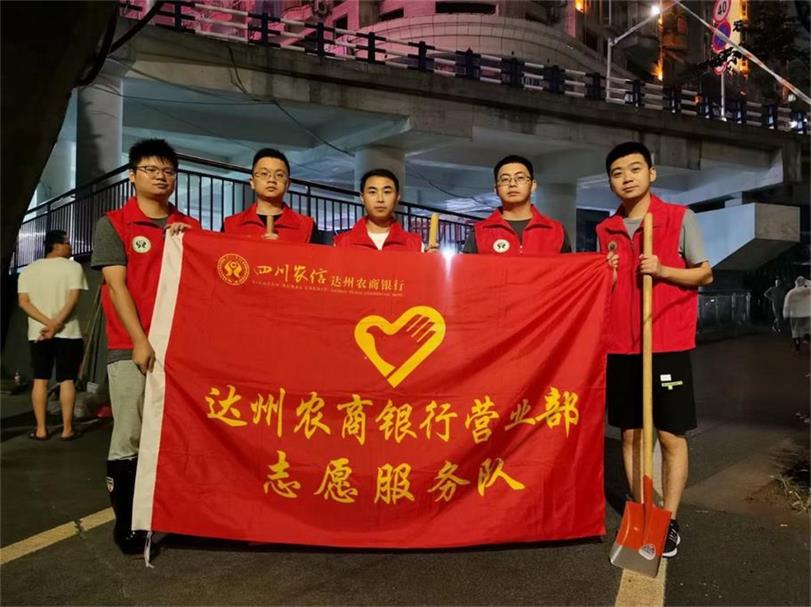 8月28、29日,达州市大面积连降暴雨,州河水位高涨,滨河路沿线淹没至2-3米高,中心城区清淤预案随之应急启动。为使沿岸居民尽快恢复正常生产生活,在达州银保监分局的统一组织和发动下,达州农商银行第一时间组织5名员工加入志愿者队伍,走上街头,开展清淤志愿者服务活动。