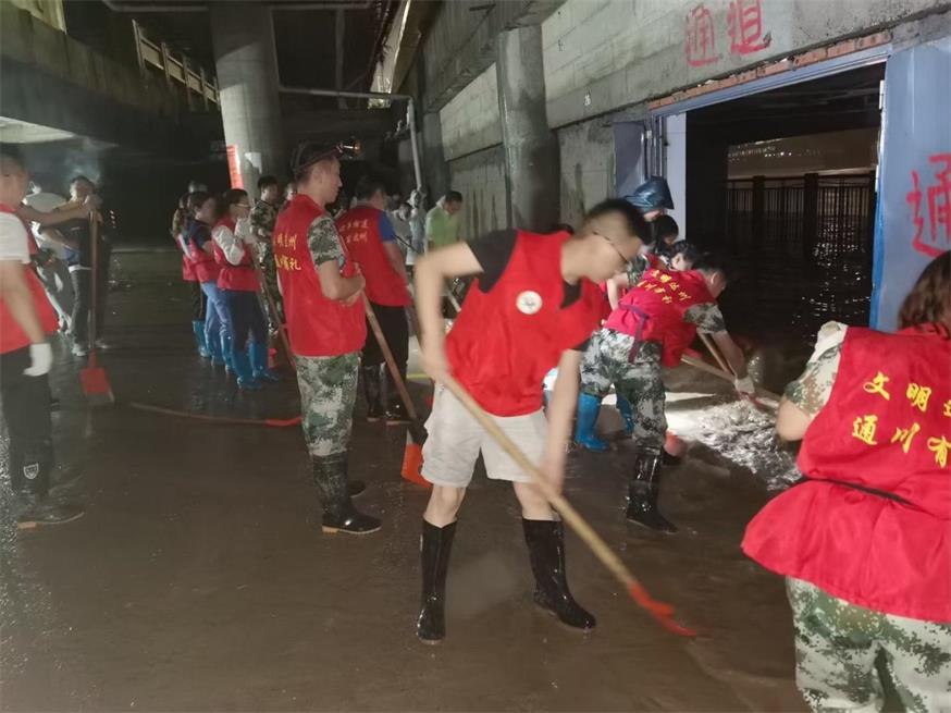 8月29日上午十点过,志愿者便到达现场,按照“水退人进”的原则,各就各位,各司其职在划定区域等待洪水退去。经过十多个小时的值班候命,一直到晚上23:00,洪水才退至红旗大桥负二楼滨河路,志愿者队伍迅速进场,按照预定计划分组分段迅速展开工作,抓时间抓效率,争分夺秒抢险,同心协力、全力以赴清淤。一直到凌晨1:30,志愿者队伍才最终完成划定区域的清淤工作。