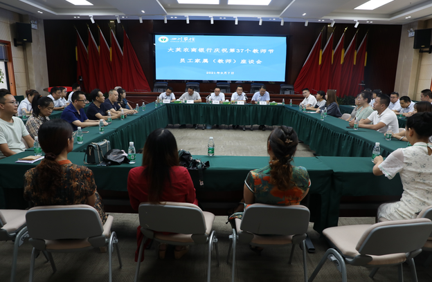 为激发员工在农信、爱农信、干农信的热情,9月7日在教师节来临之际,大英农商银行召开教师家属座谈会,热烈庆祝第37个教师节,为全行25名教师家属送上节日的祝福和慰问。大英县教体局领导到会祝贺并寄语,教师家属在发言中纷纷表达了对农商行的感谢与祝愿之情。