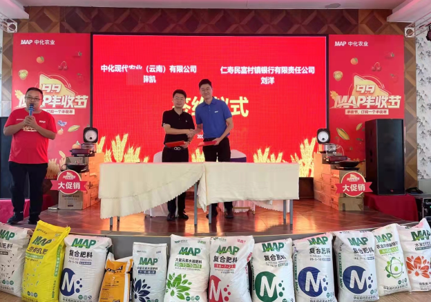 活动现场气氛热烈,人气火爆,仁寿民富村镇银行与中化现代农业(云南)有限公司的签约合作仪式将活动氛围推向高潮。