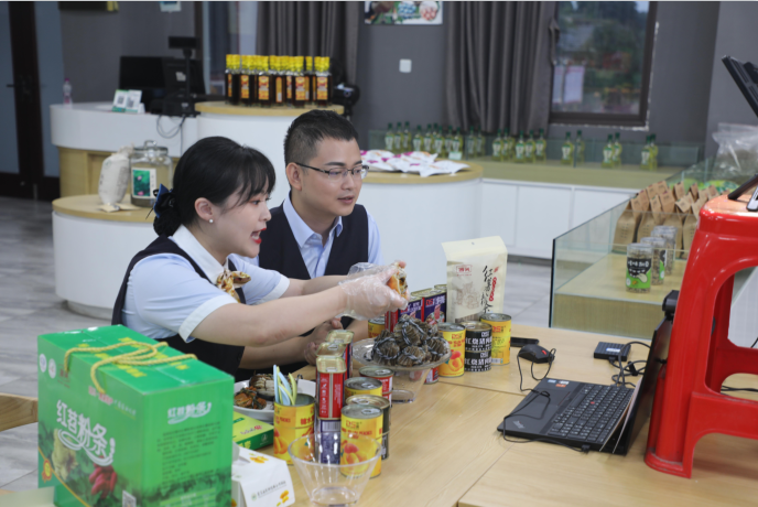 探索“金融+电商”,助农增收致富。蓬溪农商银行与拱市村共建电商运营体验店,体验店经销涵盖多种地方特产,依托“蜀信e·惠生活”电商平台为村民提供农资农具、生活用品等代销代购服务,实现“工业品下乡、农产品进城”。2021年9月17日,蓬溪农商银行联合拱市村,在体验店开展了“乡村振兴 农信助力”直播带货活动,主要推荐赤城湖大闸蟹、拱市村千叶佛莲、飘香远大火腿午餐肉等蓬溪知名特产,直播浏览人次8万余人次,销售交易量达11.5万元。
