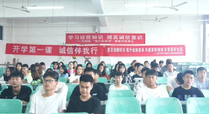 本次活动是遂宁银行与四川职业技术学院联合开设“现代征信学”课程以来,推进征信知识教育进校园的又一生动实践。课堂上,黄翠平作了“开学第一课、诚信伴我行”主题致辞。遂宁银行讲师结合实际工作中的典型案例,对大学生们了解征信,认识征信,维护良好信用记录作了宣讲。针对大学生群体的特殊性,遂宁银行讲师还就如何防范电信诈骗和“不良校园贷”陷阱等金融知识,向大学生们作了宣传和答疑。
