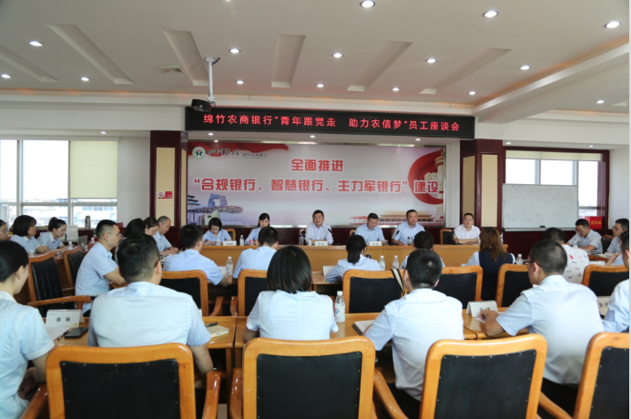 为庆祝中国共产党成立100周年,持续开展好党史学习教育,深入贯彻落实四川农信青年员工座谈会会议精神,进一步加强青年员工队伍建设,鼓励青年员工积极思考谋划绵竹农商银行改革发展事业,积极投身到绵竹农商银行的经营发展中来,9月28日,绵竹农商银行召开“青年跟党走 助力农信梦”主题青年座谈会。
