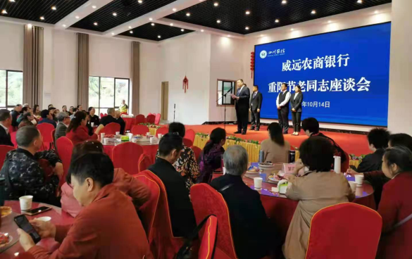 金风送爽,丹桂飘香,10 月14 日,在中华民族传统节日重阳节之际,威远农商银行邀请所有离退休员工欢聚一堂,召开了威远农商银行重阳节老同志座谈会,共庆重阳佳节,共叙深厚情谊。