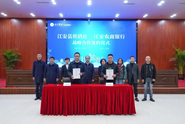 签约仪式上,双方商定将以江安县夕佳山镇白家村农村金融综合服务站(农村综合服务社)示范点,共同探索“金融+供销合作”的新型综合服务模式,谱写“三农”服务和“乡村振兴”工作的新篇章!