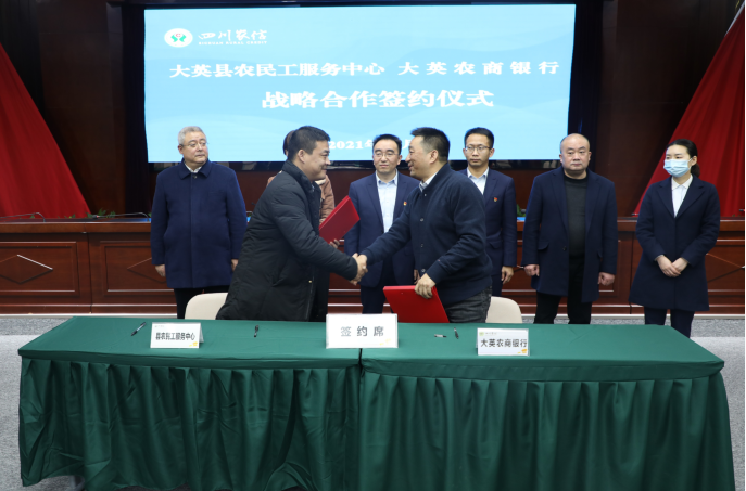 为全面落实“我为群众办实事”实践活动部署要求,12月7日,大英农商银行与大英县农民工服务中心举行战略合作签约仪式。双方主要领导出席签约议事。