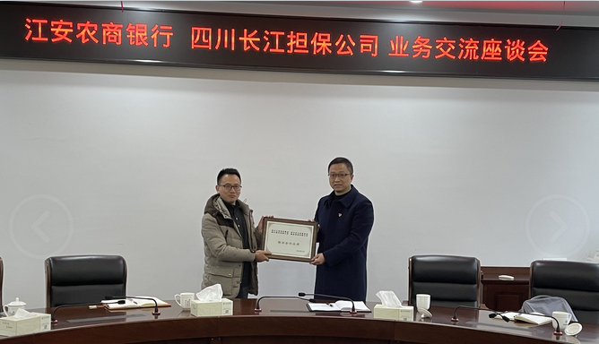 12月14日,江安农商银行与四川长江民营经济融资担保有限公司“银担合作伙伴”授牌仪式在三楼圆形会议室举行。