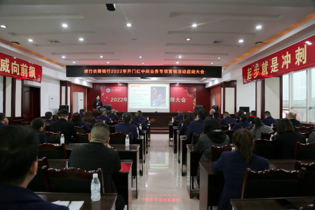 12月15日,绵竹农商银行举行2022“开门红”动员誓师大会、专题培训和主题工会活动,认真贯彻落实四川农信2022年“开门红”工作视频会精神,激发干部员工“开门红”营销热情,提早吹响2022年“开门红”集结号,奋力书写高质量发展新篇章。总行领导班子成员,中层干部和员工代表共80余人参加会议。