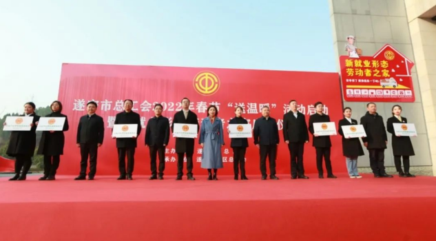 近日,遂宁市总工会2022年春节“送温暖”活动启动暨新就业形态劳动者之家启用仪式于在遂宁高新区举行。市委常委、宣传部部长,市总工会主席,遂宁高新区党工委书记涂虹出席启动、启用仪式,并向遂宁银行首批6个工会户外劳动者服务站点授牌。