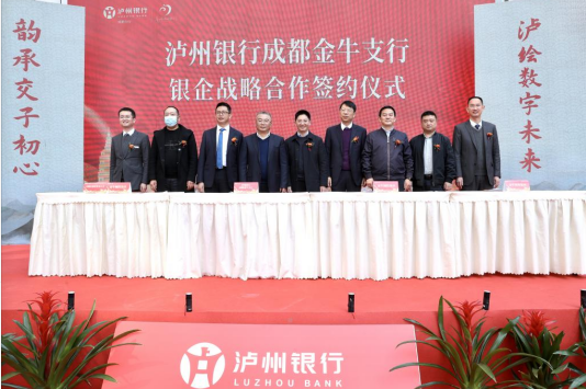 仪式上,泸州银行成都金牛支行与成都金牛国有资产投资经营集团有限公司、成都市金牛城市建设投资经营集团有限公司、成都市金牛环境投资发展集团有限公司、成都国际商贸城功能区建设发展有限公司签订了战略合作协议。