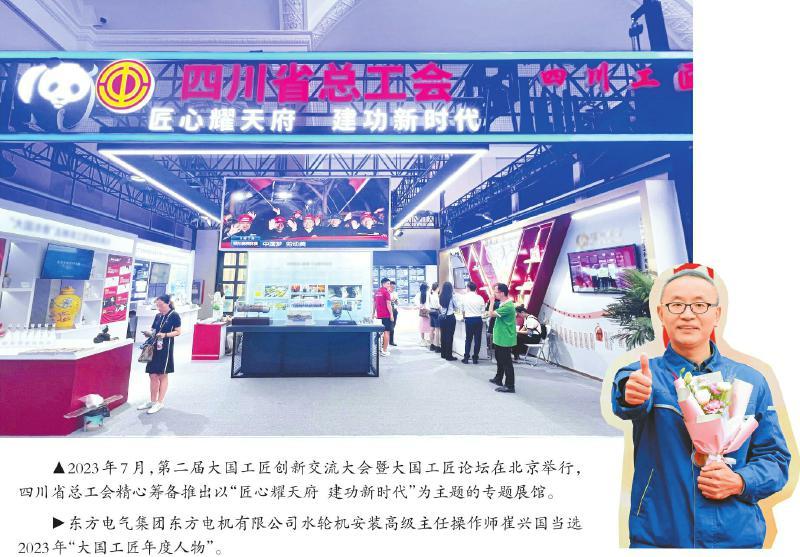匠心筑梦,技能报国。2023年7月底,第二届大国工匠创新交流大会暨大国工匠论坛在北京举办。在这场工匠创新交流活动中,四川省创新成果展区围绕“匠心耀天府 建功新时代”主题,重点展示了全省广大职工在电子信息、装备制造、能源化工等六大优势产业以及建筑工程技术等方面的代表性创新成果。