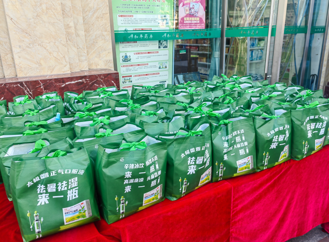 在慰问环节,主办单位为快递员、环卫工人、文明劝导员等户外工作者现场赠送了防暑礼包,里面包含藿香正气液、板蓝根、夏桑菊、龟苓膏、藿香可乐等防暑用品。收到礼包的户外工作者们脸上绽放出幸福的笑容,感激之情溢于言表。