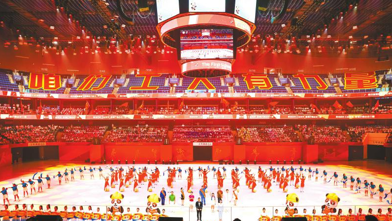 “咱们工人有力量,每天每日工作忙……”开幕式现场,《咱们工人有力量》《团结就是力量》《歌唱祖国》等激昂旋律接连响起,全场职工齐声高歌,“四川职工雄起”的呐喊响彻场馆。