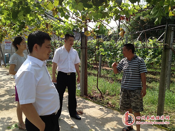 联社理事长李琪(右二)到信贷支持的大渡口镇“启玉果业”调研