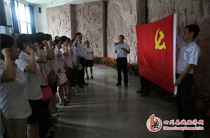 为纪念中国共产党成立94周年,6月29日一大早,四川省达州市达川区联社机关支部全体党员、离退休老党员、各支部书记以及部分入党积极分子专程前往万源红军公园开展庆祝建党94周年“红色之旅”主题活动,全体党员在党旗下重温入党誓词。 (陈文清 欧勇)