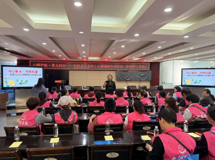 为切实关心关爱护理护工群体心理健康,缓解职业压力,提升情绪调适与心理抗压能力,2026年3月26日上午,攀枝花市东区总工会面向辖区护理护工从业人员,开展“心灵护航·暖心赋能”心理团体辅导专项活动,来自家政行业的50名护理护工参加了此次活动。
