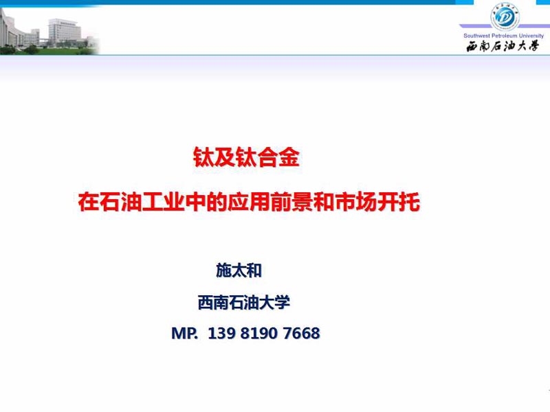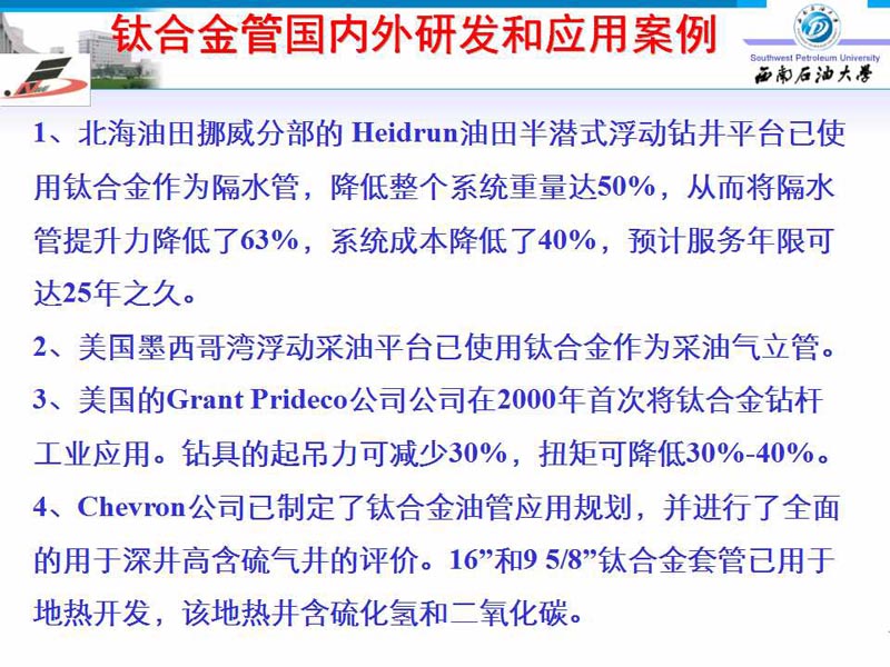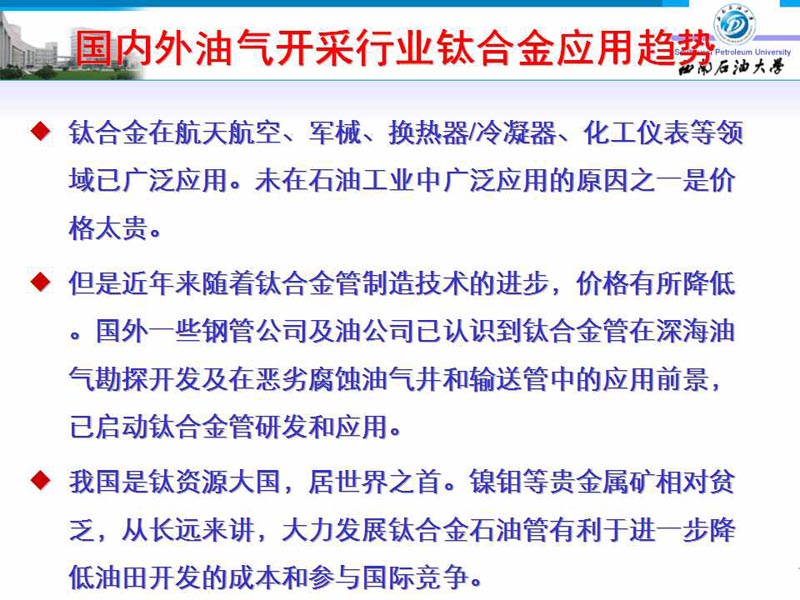 钛及钛合金在石油工业中的应用前景和市场开拓