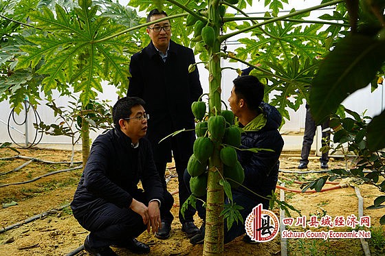 中国银监会眉山监管分局局长明洋(左)深入水果种植基地调研