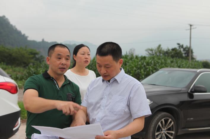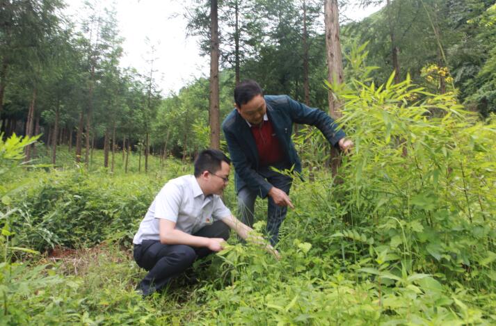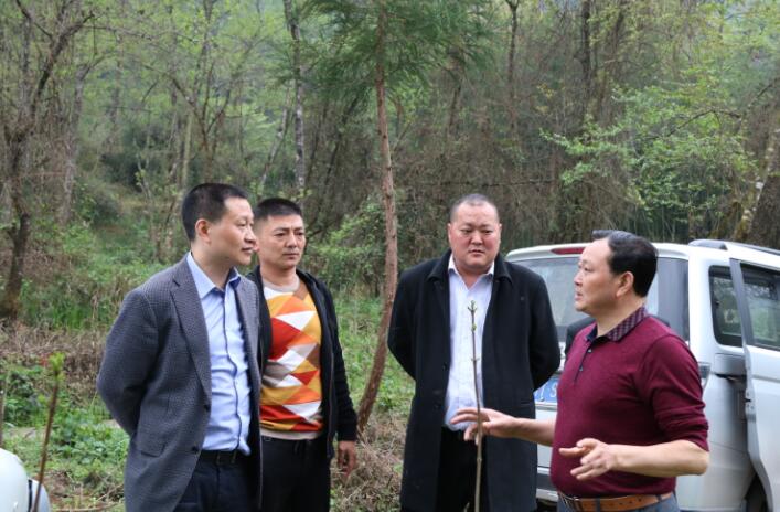 荥经联社党委书记、理事长韩先祥(左一)调研共建村——断机村方竹笋产业