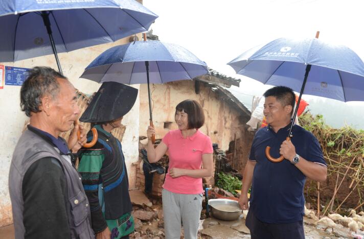 西昌金信村镇银行党支部书记、董事长梁文英在贫困户家中了解情况