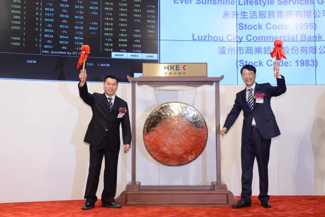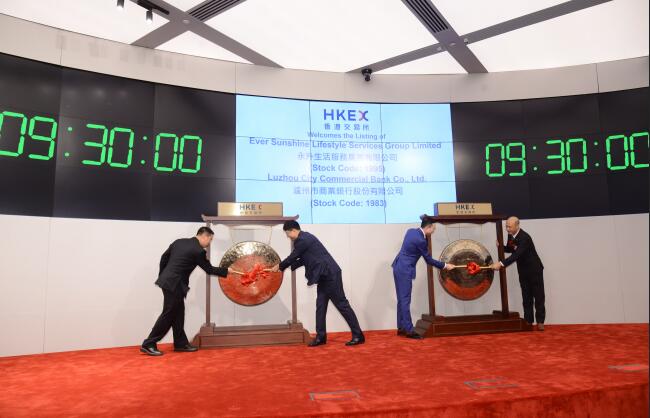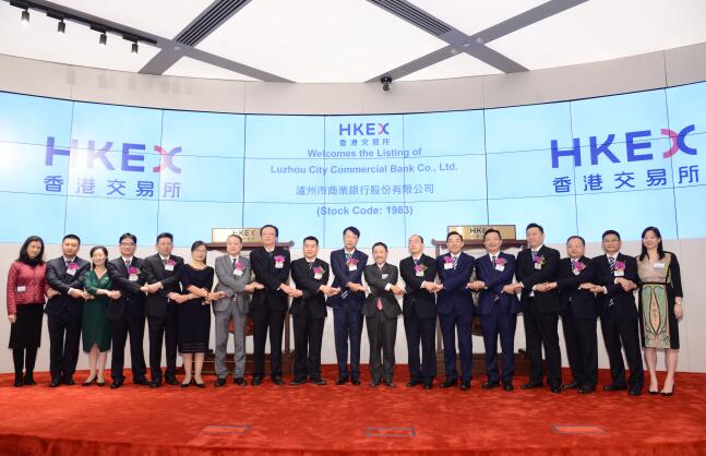 泸州市委常委、副市长龚玉泉与泸州市商业银行党委书记、董事长游江共同在香港联交所鸣锣开市,标志着泸州市商业银行在香港联交所正式挂牌交易。泸州市商业银行股票代码为1983.HK,寓意泸州市建市年份1983年。基础发行规模5.4574亿股,发售价为每股3.18港元。目前,泸州市商业银行已引入上海与德通讯技术有限公司、泸州白酒金三角酒业发展有限公司等基石投资者。