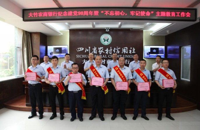 7月1日,大竹农商银行庆祝建党98周年暨“不忘初心,牢记使命”主题教育工作会在总行三楼大会议室召开,缅怀党的历史,重温入党誓词,表彰先进典型,庆祝党的98岁华诞,深入推进我行“不忘初心,牢记使命”主题教育活动。总行党委成员、各支部书记、全体中层干部、各支行行长及受表彰的优秀党员、优秀党务工作者参加本次大会。
