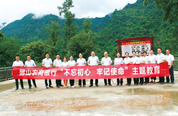 屏山农商银行党委书记吴远川(左八)带领党员干部开展“不忘初心,牢记使命”主题教育