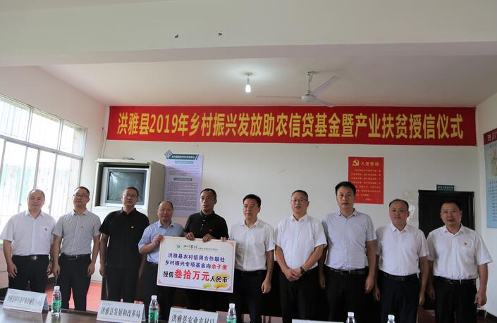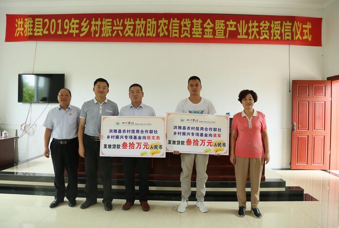 乡村振兴,关键是产业振兴,产业发展需要资金支持。2019年6月27日和7月4日,分别在洪雅县洪川镇葛树坪村和止戈镇莲花村举行的2019年乡村振兴发放助农信贷基金暨产业扶贫授信仪式上,洪雅联社聚合各方力量,创设的1亿元乡村振兴专项授信基金正式启动,并现场为部分企业、专合社、业主现场授信。