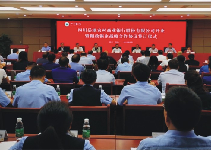 9月26日,四川岳池农村商业银行股份有限公司(以上简称岳池农商银行)举行开业大会暨银政银企战略合作协议签订仪式,正式挂牌开业。在岳池县农村信用合作联社基础上改制而成的岳池农商银行由此迈上现代银行转型发展的新征程.同时,也为广安市农村信用社改制组建农商银行画上了句号。四川农信广安办事处党委书记王德平,岳池县委副书记、县长谭云共同为岳池农商银行授牌。